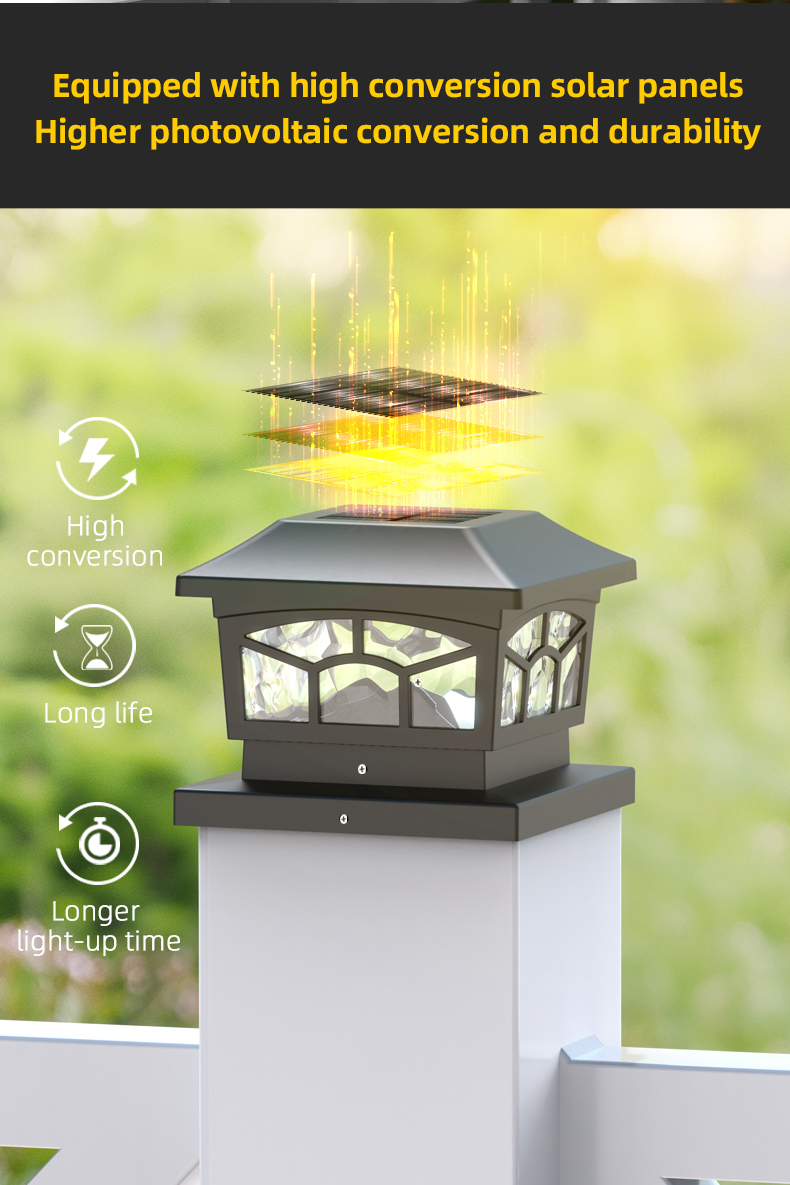 Landssign's 8 LED Jam kerja solar Post Light mempunyai sistem sensitif cahaya pintar, kalis air yang kuat, dan mudah dipasang, sesuai untuk hiasan halaman, taman, dll.
